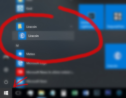 4 - Start Liracoin Core from windows Start Menu